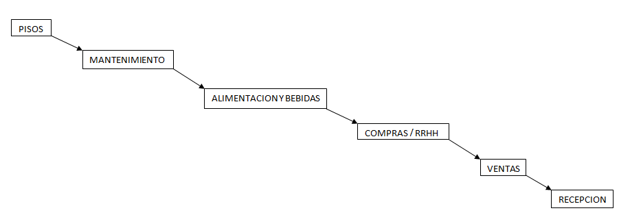 Los obreros han terminado con las obras, así que lo primero que hay que realizar es quitar toda la basura y comenzar a montar las habitaciones, lobby, restaurante, cocina….. Siguiendo ésta explicación, el primer departamento que es contratado es PISOS.