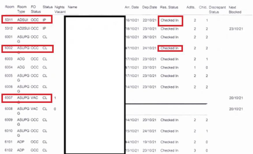 Una vez comprobado ésto, pasaremos a comprobar que las habitaciones que debemos limpiar estén en su correspondiente estado. Por ejemplo: