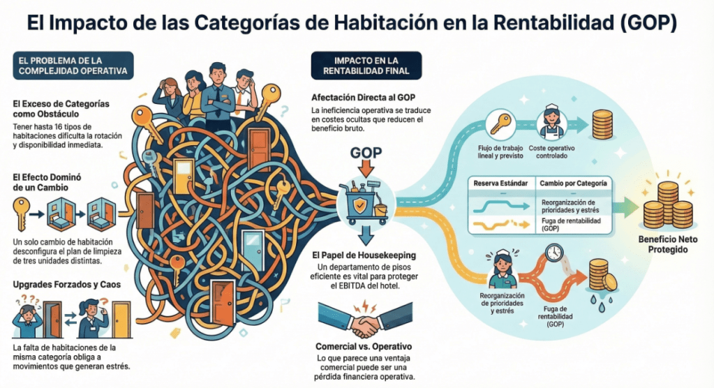 Cuantas más categorías tiene un hotel, más complejo se vuelve el trabajo de todos los departamentos. Lo que desde el punto de vista comercial puede parecer una ventaja, desde el punto de vista operativo puede convertirse en un coste oculto que termina afectando directamente al GOP del hotel.