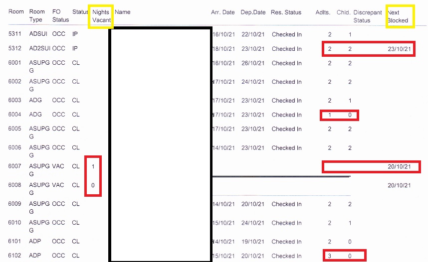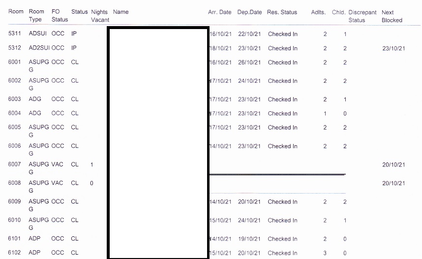 Podemos observar que aparecen las habitaciones con diferentes Room Status.
