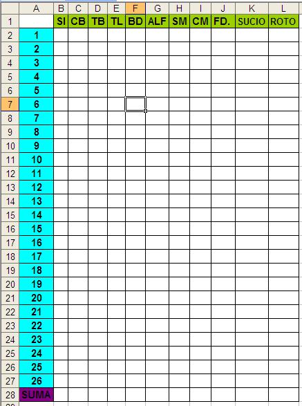 En la columna de la izquierda se ponen los números de las habitaciones y en la horizontal de arriba, cada una de las clases de ropa que hay en la habitación siendo: