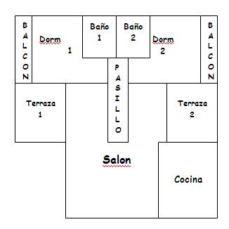 Siendo el recorrido : Balcón 1—>Dormitorio 1—>Baño 1—>Balcón 2—>Dormitorio 2—>Baño 2—>Pasillo—>Terraza 1—> Terraza 2—>Salón—>Cocina—>Salida del apartamento.