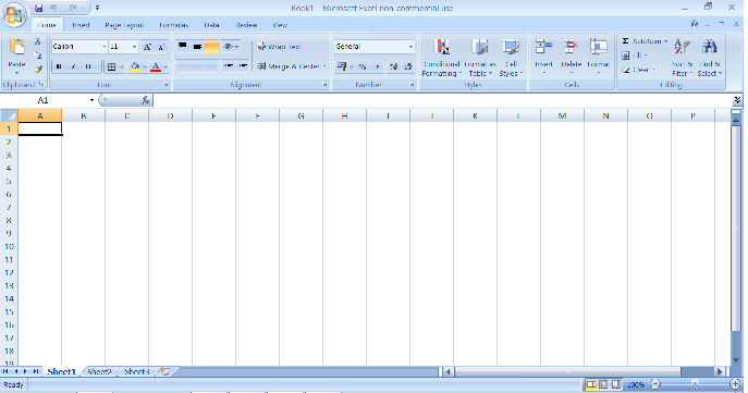 Recordad como comenté en el primer post sobre Excel que los números corresponden a las FILAS y las letras a las COLUMNAS, y que las celdas se enumeran con el número de fila y el nombre de la columna, por ejemplo, en la fotografía el cursor está en la celda A1. Siempre se escribe primero la columna y después la fila.