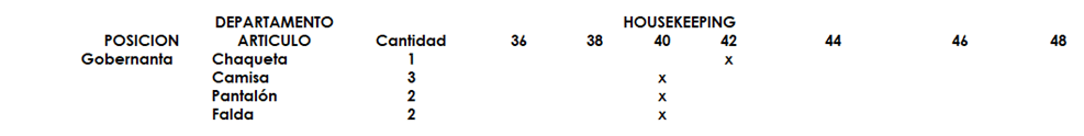 El número exacto de prendas que se entrega al empleado dependerá del departamento donde trabaja y de si el hotel proporciona o no la limpieza de uniformes in situ.