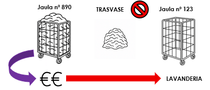 No se debe permitir que se realicen trasvases desde las jaulas ubicadas en los almacenes de planta (office), ya que esta práctica provoca sobrecostes por alquiler de jaulas, contaminación cruzada y pérdida de trazabilidad en el circuito de la ropa.