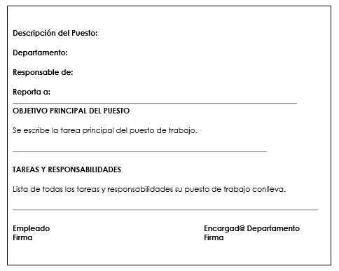 Es fundamental que la descripción del puesto sea firmada tanto por el empleado como por el responsable del departamento, y que se archive en el expediente del trabajador en Recursos Humanos.