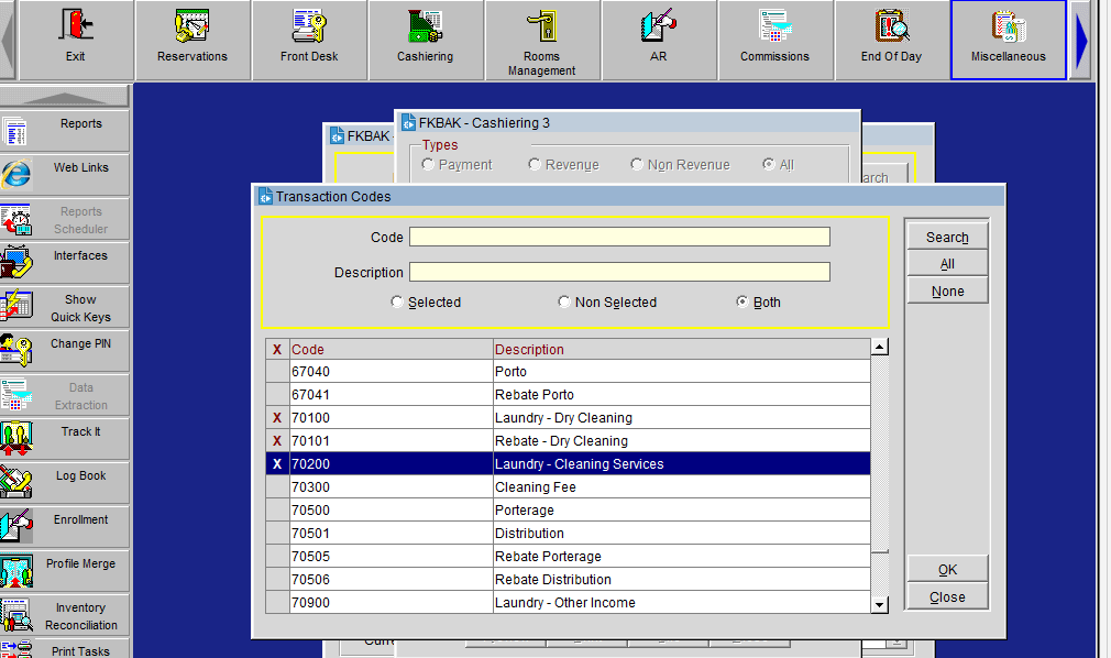 6º. Elegiremos los códigos 70100,70101 y 70200. Podemos elegir también el 70900 (Laundry-other incomes) pero los tres anteriores son los principales.